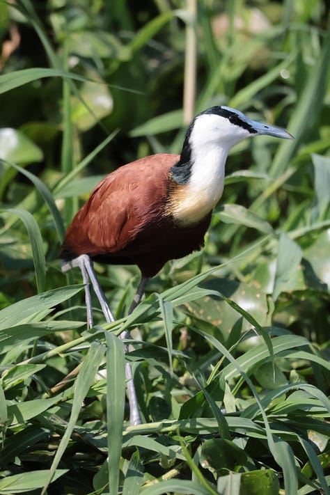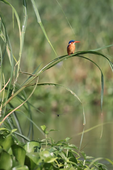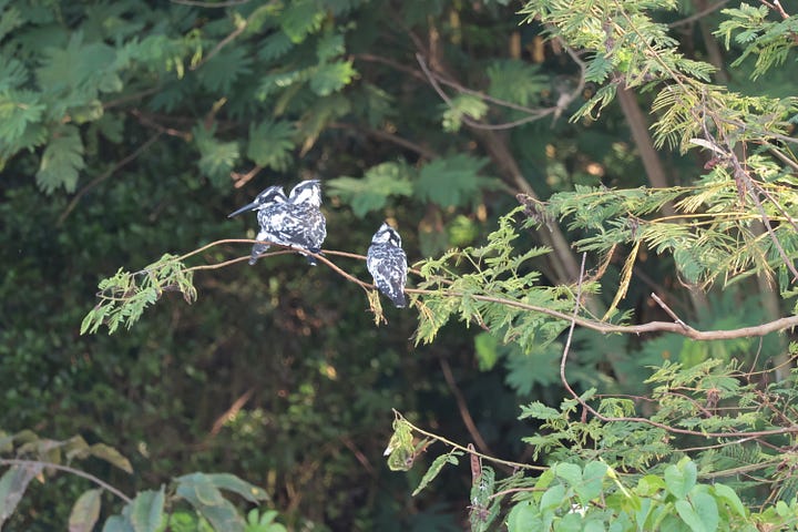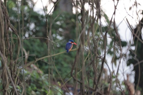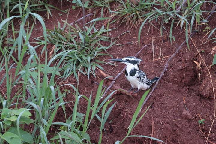We spotted so many birds, despite Kibbi continuously apologising for there not being many birds out today. We spotted: cormorants, a kite eagle, Purple Egrets, Lily Walking birds, Woodland Kingfishers, Malachite Kingfishers Sunbirds, a number of species of Hawks and Eagles - some Kibbi didn’t even know what they were.