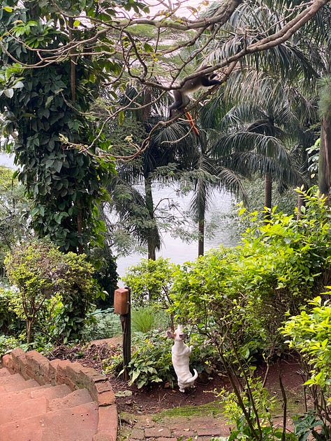 The rest of the afternoon was spent relaxing and watching the monkeys throw themselves from tree to tree. One from the top of a palm tree into the shrubs below.