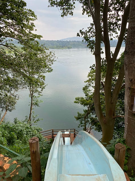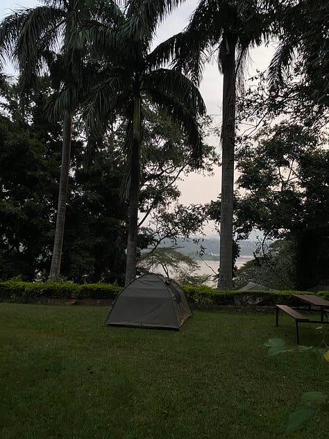 It was hot when we arrived in Jinja, so I quickly put my tent up and splashed my face with water to cool down. Our campsite was stunning. Looking over the Nile River, from the restaurant all the way across the camping area. It was rustic but welcoming and homely. We received a briefing on the different activities we could do which included rafting, a boozy boat cruise, mountain biking, and quad biking. While everything sounded amazing, I wanted to be careful of my funds but also take some time to rest, so I instead asked about a bird watching tour, which was arranged for two mornings from today. While Lynley and Bernadette signed up for rafting, booze cruising and bird watching.